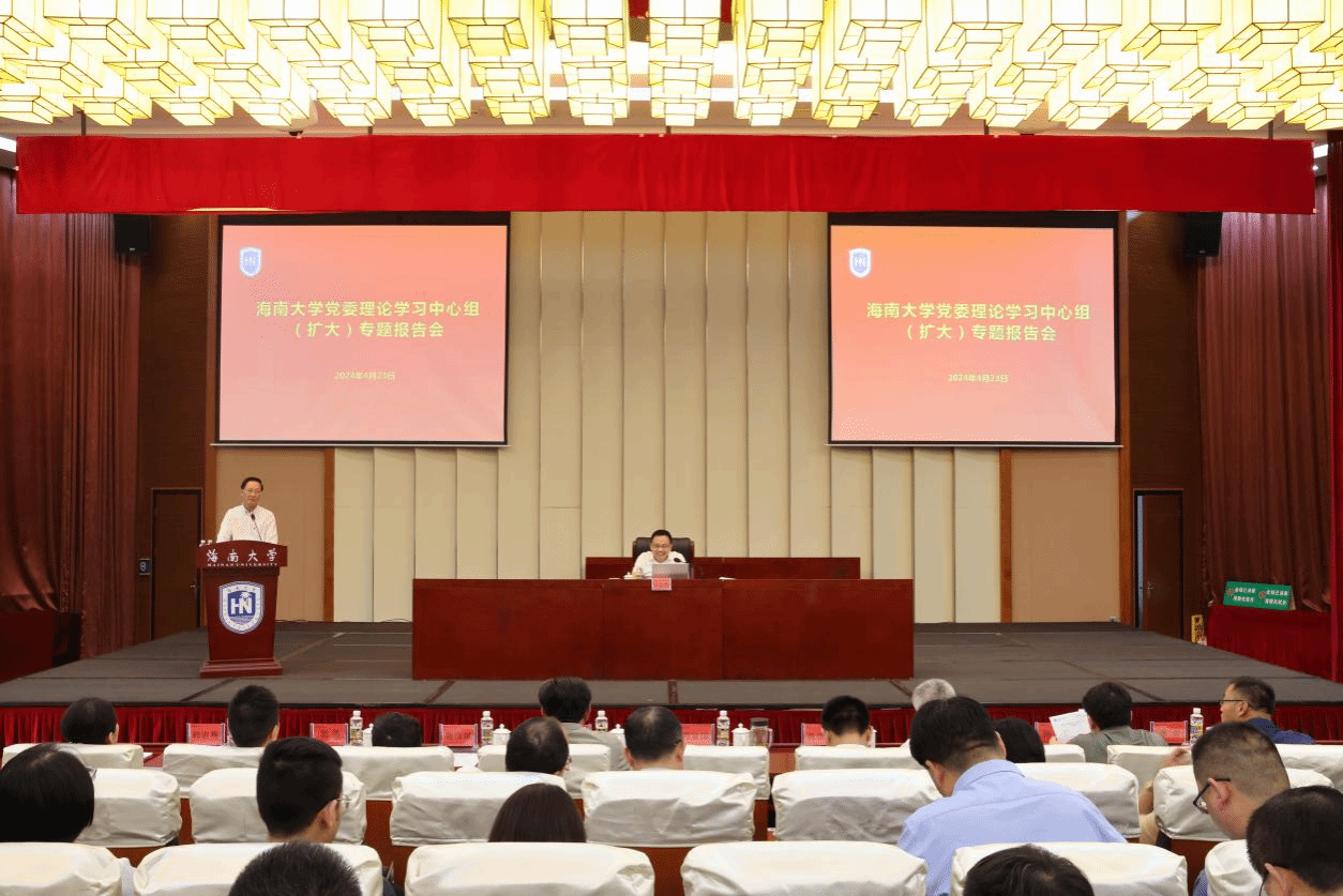 本站訊(記者 鄭潤澤 廖丹丹)4月23日下午,海南大學(xué)黨委理論學(xué)習(xí)中心組(擴(kuò)大)專題報(bào)告會(huì)在社科樓二樓報(bào)告廳召開,會(huì)議圍繞“扎實(shí)開展黨紀(jì)學(xué)習(xí)教育,縱深推進(jìn)全面從嚴(yán)治黨,為加快建設(shè)綜合性研究型國際化‘雙一流’大學(xué)提供堅(jiān)強(qiáng)紀(jì)律保障”主題開展專題學(xué)習(xí)。教育部黨建工作聯(lián)絡(luò)員譚基虎;校黨委書記符宣國,黨委常委和校領(lǐng)導(dǎo)高佃恭、聶清斌、邱錫光、賀勇、陳駿、韓淑梅、譚勇出席會(huì)議。會(huì)議由符宣國主持。會(huì)議現(xiàn)場。廖丹丹 攝海南省紀(jì)委常委冷葆青作了題為《...