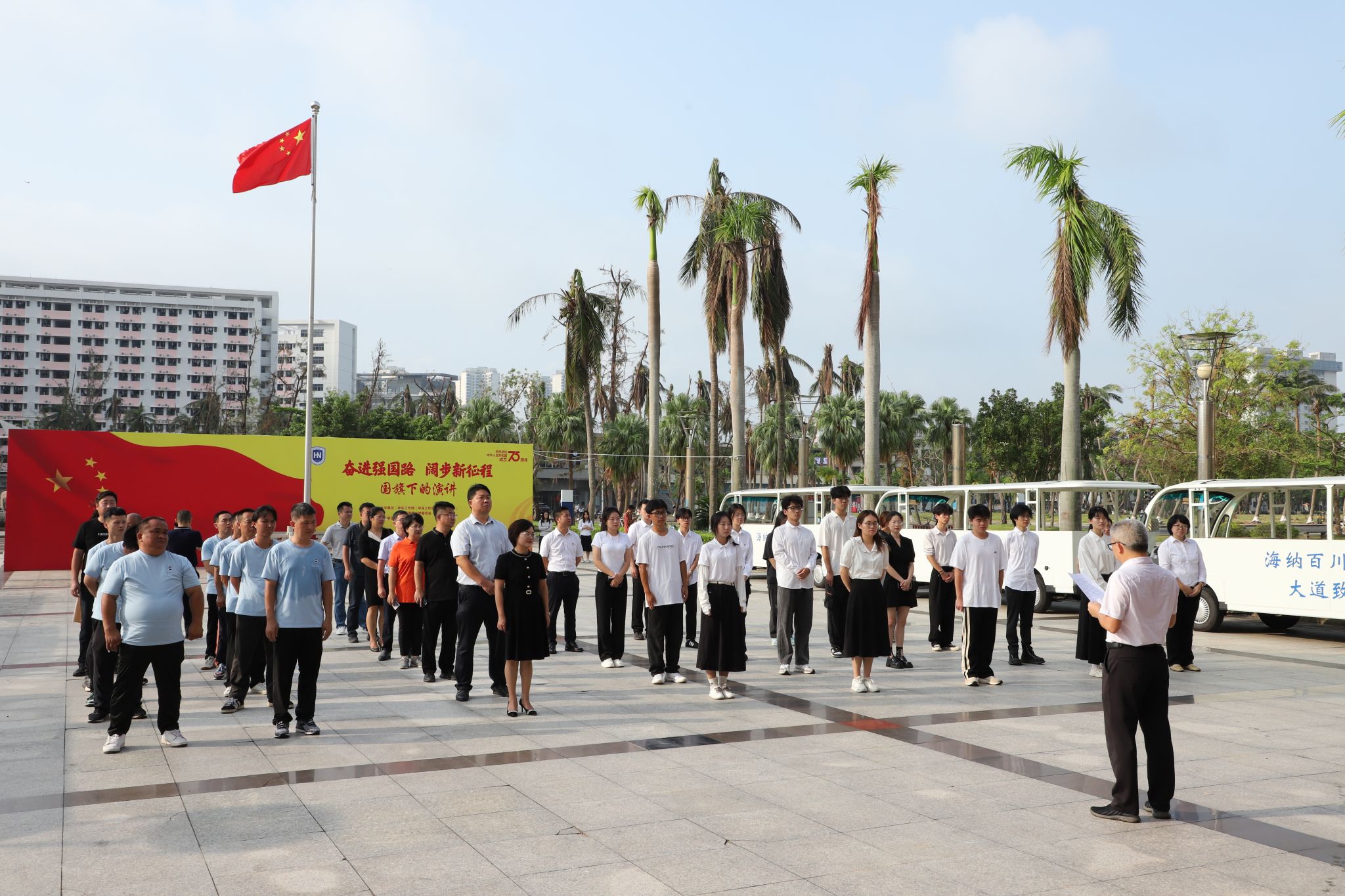 本站訊(通訊員:張征)10月1日上午,海南大學新能源擺渡車啟動儀式在辦公樓廣場舉行。海南大學黨委常委、副校長邱錫光主持儀式并致辭。