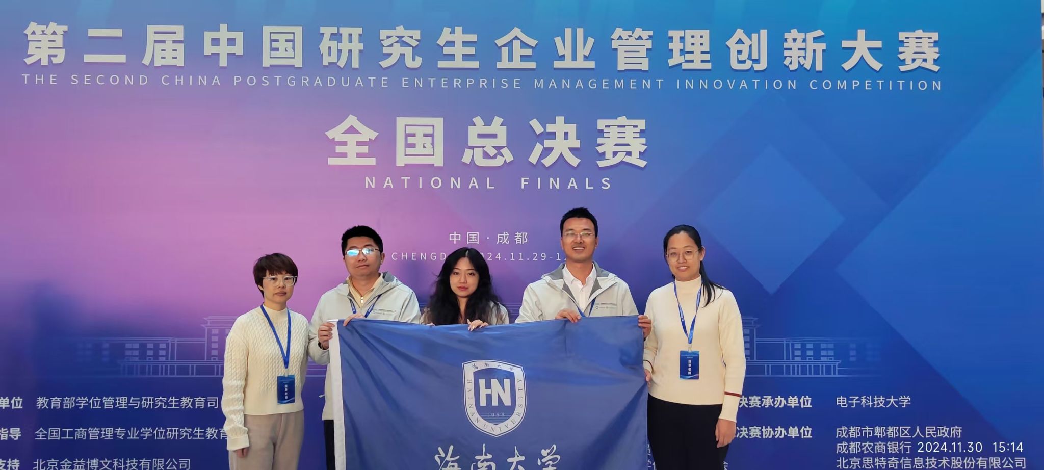????海南大學MBA代表隊。????本站訊(通訊員 戚曉慧)2024年11月30日,第二屆中國研究生企業管理創新大賽全國總決賽在成都科幻館盛大啟幕。海南大學MBA代表隊再獲全國一等獎。本屆大賽分為企業決策賽道和商業分析與智能應用賽道兩個賽道,共吸引來自298所高校的14433人次的研究生參賽。經過初賽、復賽的激烈角逐,共有來自139所院校的210支隊伍晉級全國總決賽。在海南大學MBA教育中心學術主任郭琦老師的帶領及管科系鞏玲君老師的指導下,...