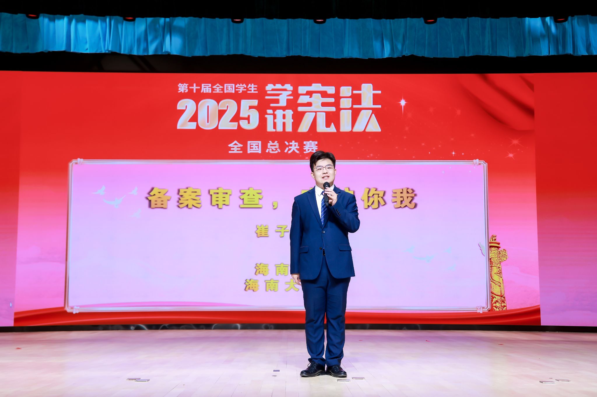 本站訊(通訊員 曹夢月 陳星宇)12月4日,在第十二個國家憲法日,海南大學緊緊圍繞“學習宣傳貫徹習近平法治思想,推動憲法深入人心”這一主題,組織開展了形式多樣的法治宣傳教育活動。現(xiàn)場展演照片上午,在北京舉行的國家憲法日教育系統(tǒng)“憲法晨讀”活動中,第十屆全國學生“學憲法 講憲法”演講比賽高校組冠軍、學校椰風書院、法學院國際法專業(yè)2024級本科生崔子恒以《備案審查,守護你我》這一獲獎作品進行了現(xiàn)場展演。當天,各書院組織學生以集中與自主相結合的方式,...