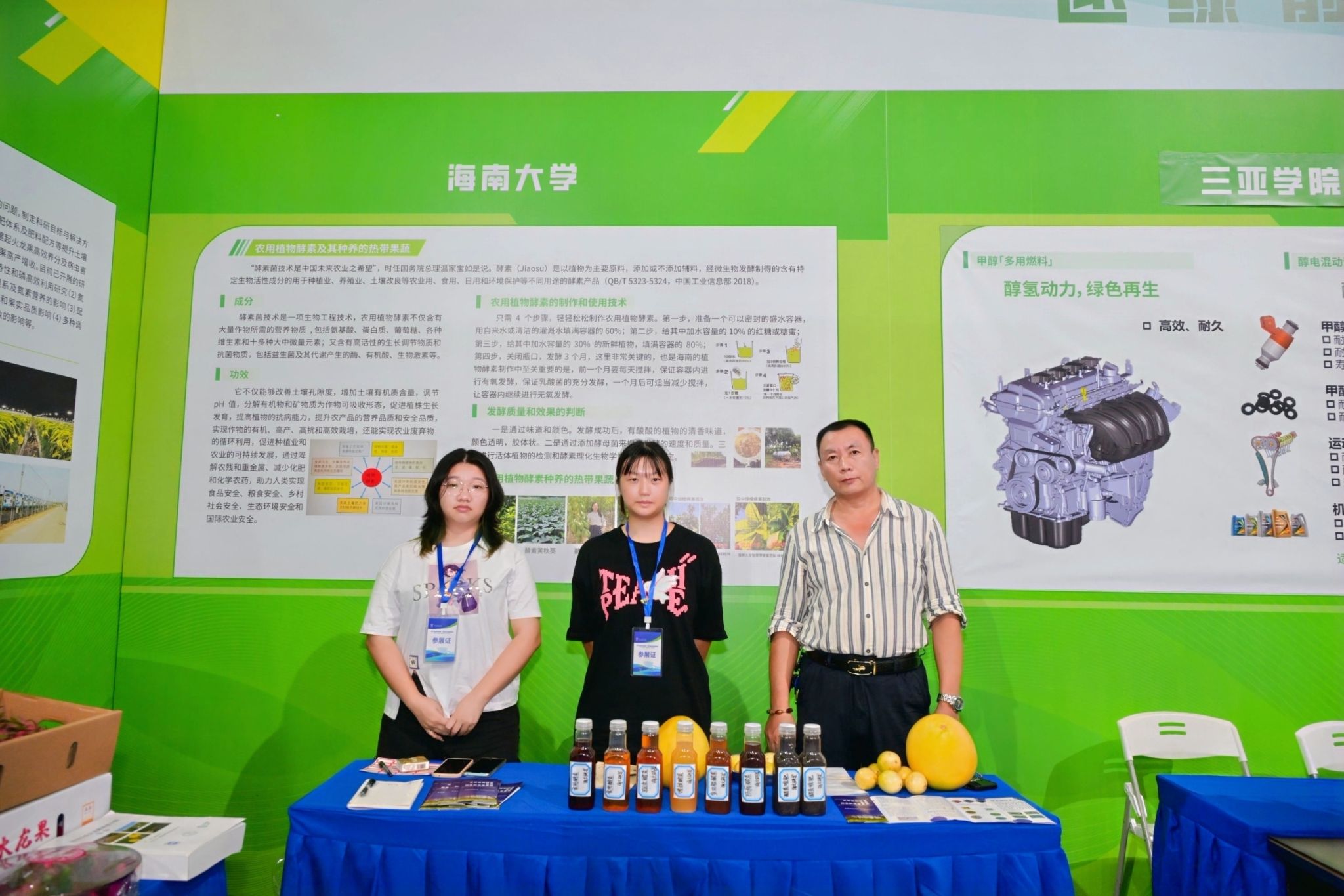 在海南大學科技小院的展臺上,各種海南大學自主研發的食用酵素、增甜酵素、驅蟲酵素、防病酵素陳列其中,揭露鮮美多汁的果蔬生長的“秘籍”;還有海南大學學生自主種植的百香果、甜柚等農產品可供到場的觀眾品嘗,市民在觀察、品味的過程中切實感受“科技創造美好生活”。