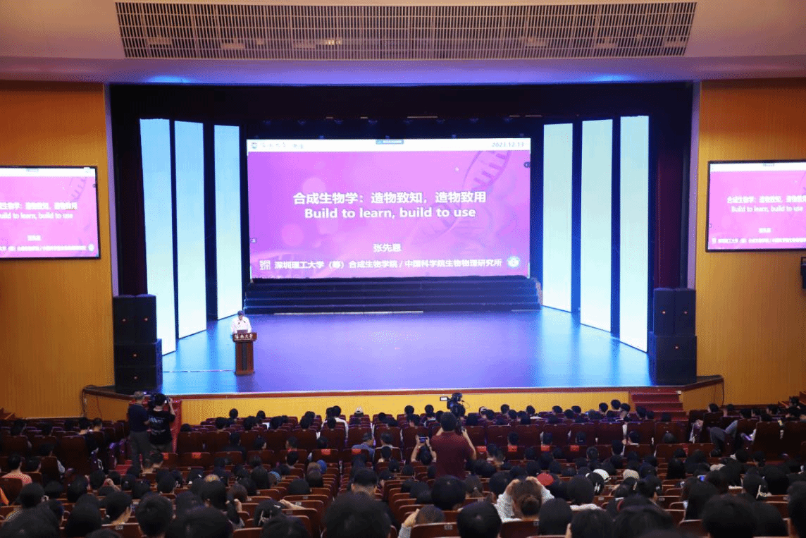 本站訊(記者 萬睿志 張娟 通訊員 聶萌)12月13日晚上,海南大學(xué)第十六期頂尖科學(xué)家講壇在思源學(xué)堂大禮堂舉行。深圳理工大學(xué)(籌)合成生物學(xué)院院長、中科院生物物理所研究員張先恩作題為《合成生物學(xué)——造物致知,造物致用》的主題報告。來自海甸校區(qū)、儋州校區(qū)、觀瀾湖校區(qū)、崖州灣科教園、城西基礎(chǔ)教學(xué)部的師生代表以線上線下相結(jié)合的形式聆聽報告。海南大學(xué)黨委書記符宣國出席講壇,校長、中國科學(xué)院院士駱清銘主持講壇。