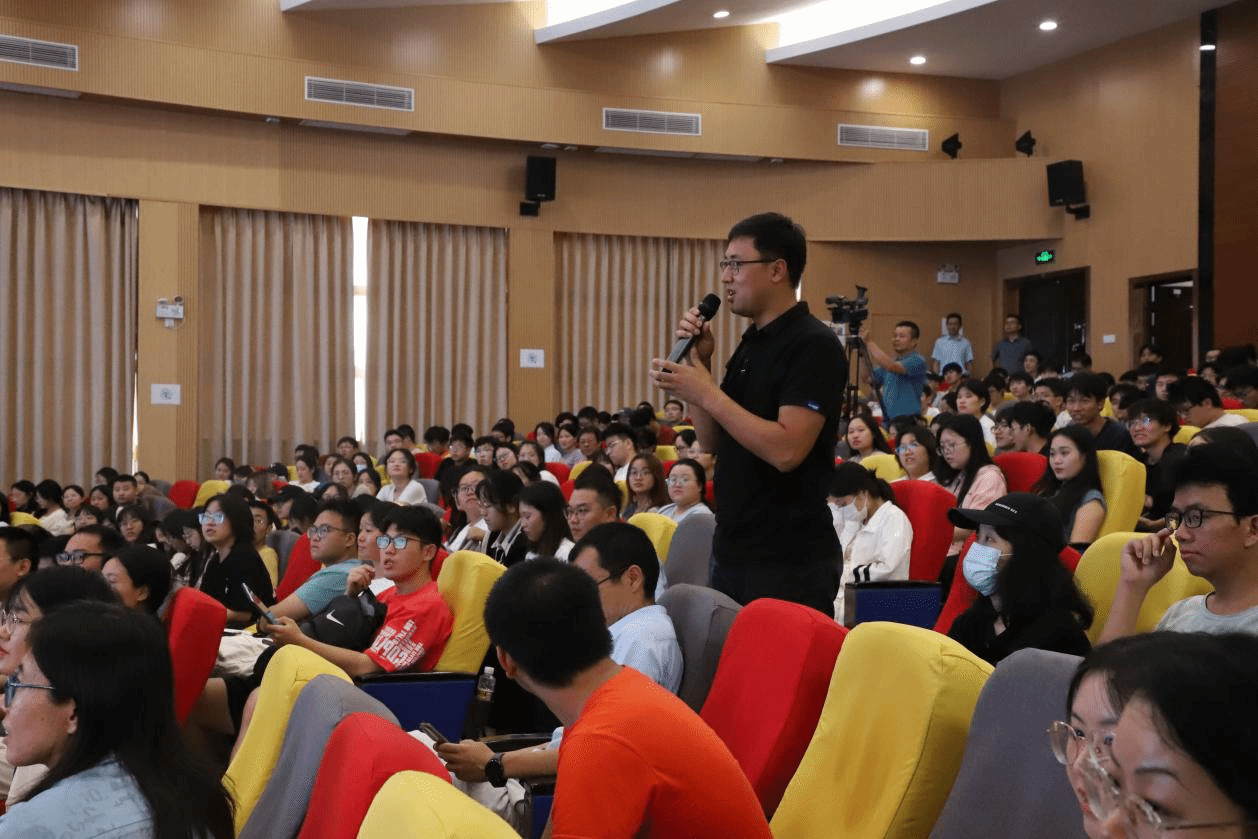 講壇現(xiàn)場(chǎng)座無(wú)虛席,師生們?nèi)褙炞⒌伛雎犞x建新的精彩報(bào)告,圍繞報(bào)告內(nèi)容主動(dòng)思考,與謝建新展開交流與討論,謝建新耐心、專業(yè)地對(duì)各位師生提出的問題進(jìn)行解答。