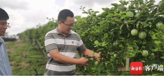 房傳營(yíng)副教授帶著兩名學(xué)生在果園內(nèi)查看掛果情況。黝黑的臉龐、身穿防曬衣的海南大學(xué)農(nóng)藝與種業(yè)專業(yè)的碩士研究生倪世豪和王露在地里熟練地做著農(nóng)活,一點(diǎn)也不像象牙塔內(nèi)的高校生。