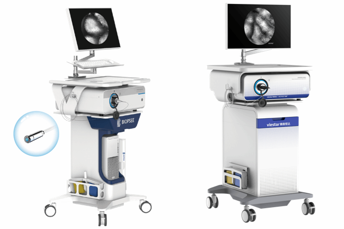 共聚焦顯內(nèi)窺鏡來自于實(shí)驗(yàn)室常用的共聚焦顯微鏡,是將傳統(tǒng)實(shí)驗(yàn)室桌面使用的共聚焦顯微鏡原理運(yùn)用到內(nèi)窺鏡技術(shù)當(dāng)中,共聚焦內(nèi)窺鏡因其出色的三維層吸能力和高分辨率等特點(diǎn),被廣泛應(yīng)用于活體組織高分辨率組織學(xué)診斷,共聚焦內(nèi)窺鏡一般包括插入部、控制部、成像部,插入部包括插入管、鏡頭、光纖束、其它管線等,鏡頭設(shè)置于插入管的一端,光纖束內(nèi)置于插入管,控制部通過其管線完成等一系列控制動作,成像部用于顯示人體內(nèi)部組織的成像。共聚焦顯內(nèi)窺鏡技術(shù)融合了高分辨微型顯微物鏡、高性能掃描控制系統(tǒng)和精密而復(fù)雜的光路系統(tǒng),相比常規(guī)內(nèi)窺鏡,其放大倍數(shù)可以實(shí)現(xiàn)1000倍的放大。因此,該技術(shù)可以幫助醫(yī)生更清晰地觀察組織結(jié)構(gòu),發(fā)現(xiàn)微小的病變,從而提高診斷的準(zhǔn)確性和治療效果。