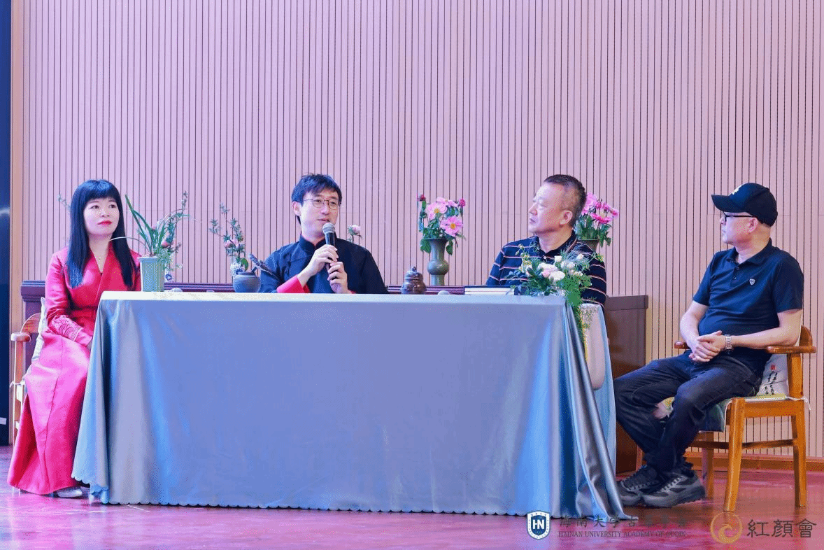由海南大學(xué)古琴學(xué)會指導(dǎo)教師、國際傳播與藝術(shù)學(xué)院的曹量副院長,海南科技職業(yè)大學(xué)教育與音樂學(xué)院的潘國強院長,中國社科院助理研究員屠音鞘博士,西南林業(yè)大學(xué)講師曹曉萌組成的“導(dǎo)聆嘉賓團”為現(xiàn)場的師生和觀眾們講述了“古琴的前世今生”“樂為何物”“琴中古曲是《幽蘭》”等知識點。