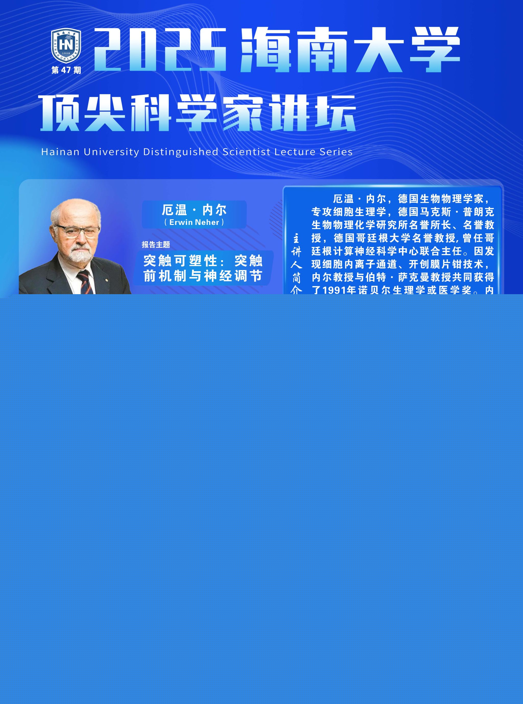 下一篇:2025海南大學(xué)頂尖科學(xué)家講壇 | 重新定義成功:學(xué)術(shù)領(lǐng)導(dǎo)力之旅;橫跨五大洲的昆蟲化學(xué)生態(tài)學(xué):一項(xiàng)貫穿學(xué)術(shù)生涯的研究計(jì)劃